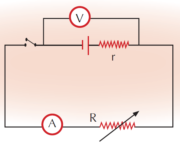 ومن العلاقة الأخيرة نتبين أنه مع إنقاص شدة التيار تدريجيًّا بزيادة المقاومة الخارجية R فى الدائرة الموضحة فى (شكل ١) يزداد فرق الجهد بين قطبى العمود V.